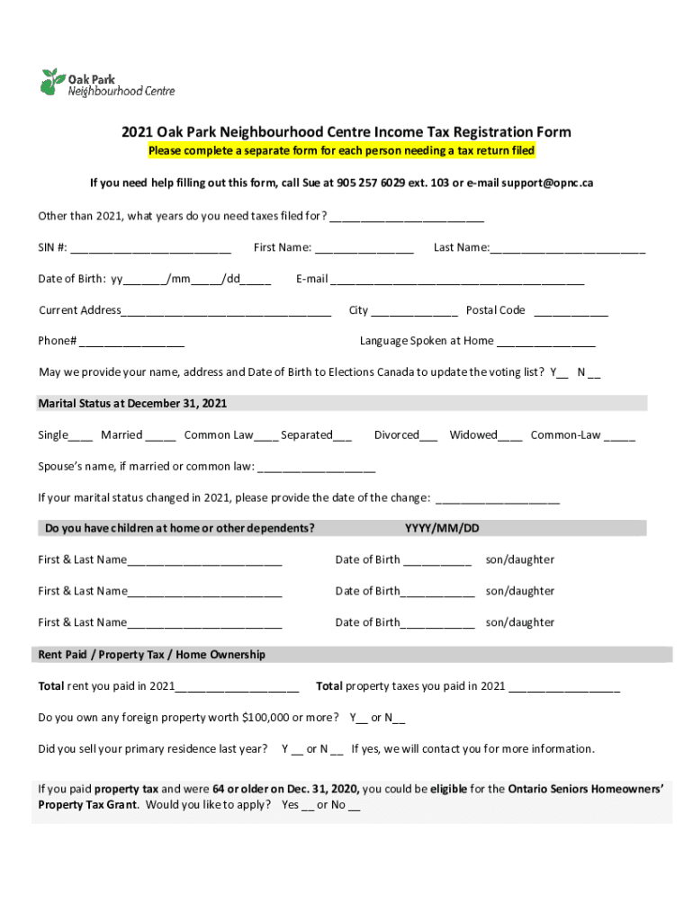 Register for a Free Tax Filing Clinic with the Oak Park Neighborhood Center! We provide free, year round tax filing for eligible Halton residents. We are currently filing returns virtually or by prearranged