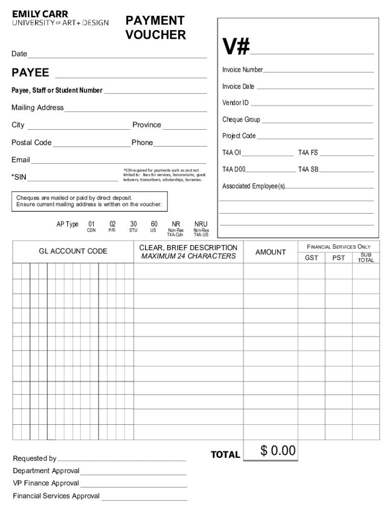 PAYMENT VOUCHER#DateInvoice NumberPAYEEInvoice Ratepayer, Staff or Student NumberVendor IDM ailing Address CityProvincePostal CodePhoneCheque Group Project Voicemail *SIN required for payments such