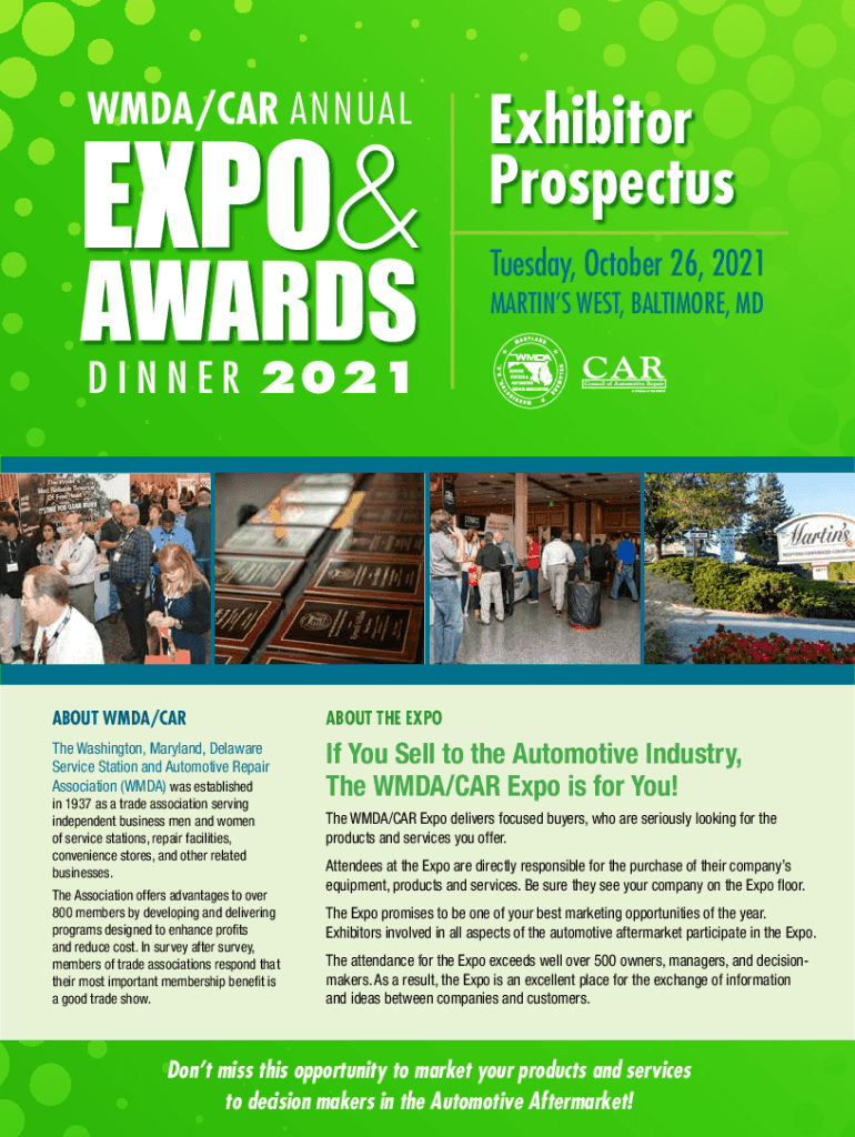 WMD/CAR ANNUALEXPO& AWARDSExhibitor Prospectus Tuesday, October 26, 2021, MARTINS WEST, BALTIMORE, MDD I N N E R 2021ABOUT WMD/MARABOUT THE Expose Washington, Maryland, Delaware Service Station and