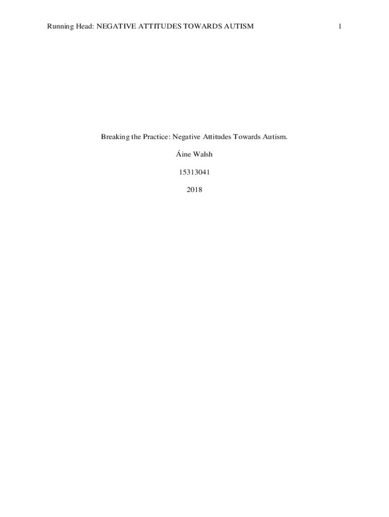 Running Head: NEGATIVE ATTITUDES TOWARDS AUTISMBreaking the Practice: Negative Attitudes Towards Autism.