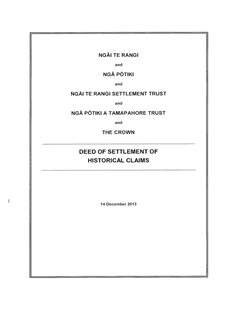Get the free Ngi Te Rangi and Ng Ptiki Deed of Settlement summary