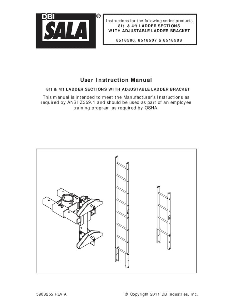 Instructions for the following series products: 8ft & 4ft LADDER SECTIONS WITH ADJUSTABLE LADDER BRACKET 8518506, 8518507 & 8518508User Instruction Manual 8ft & 4ft LADDER SECTIONS WITH ADJUSTABLE