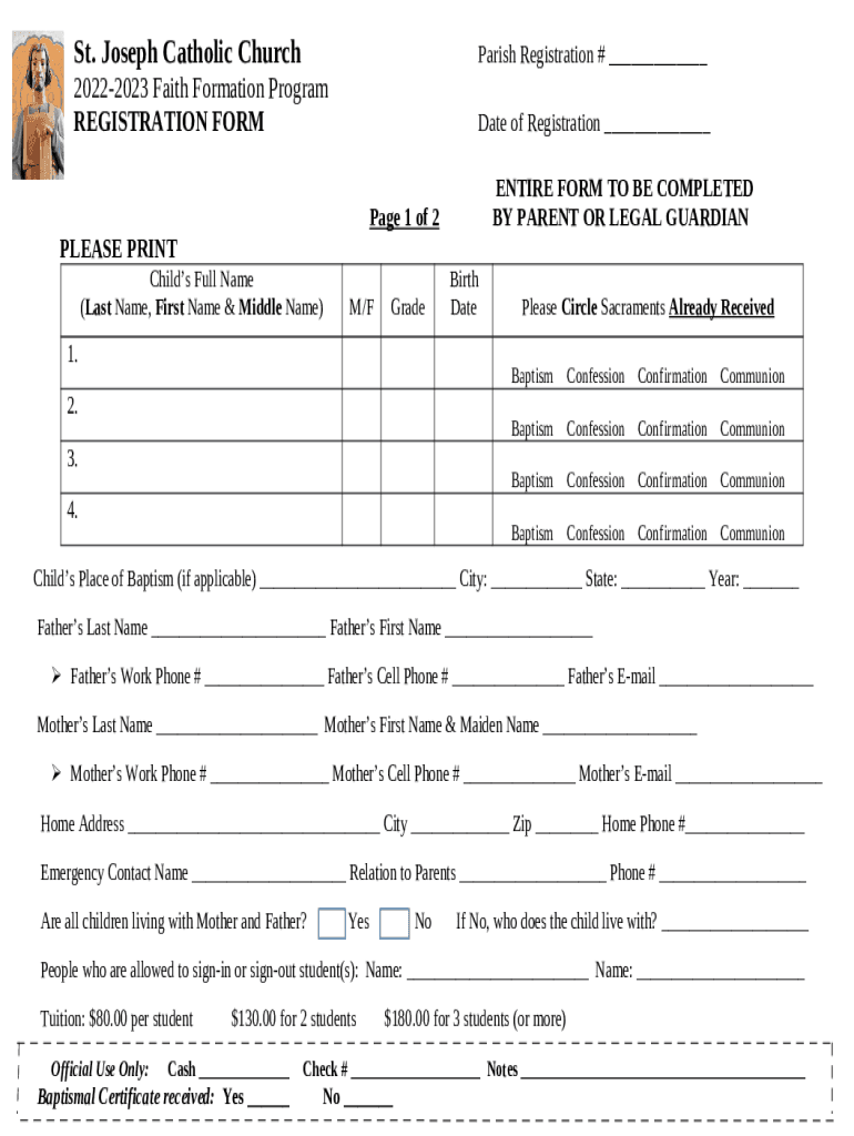 Joseph Catholic ChurchParish Registration # word template: frequently asked questions