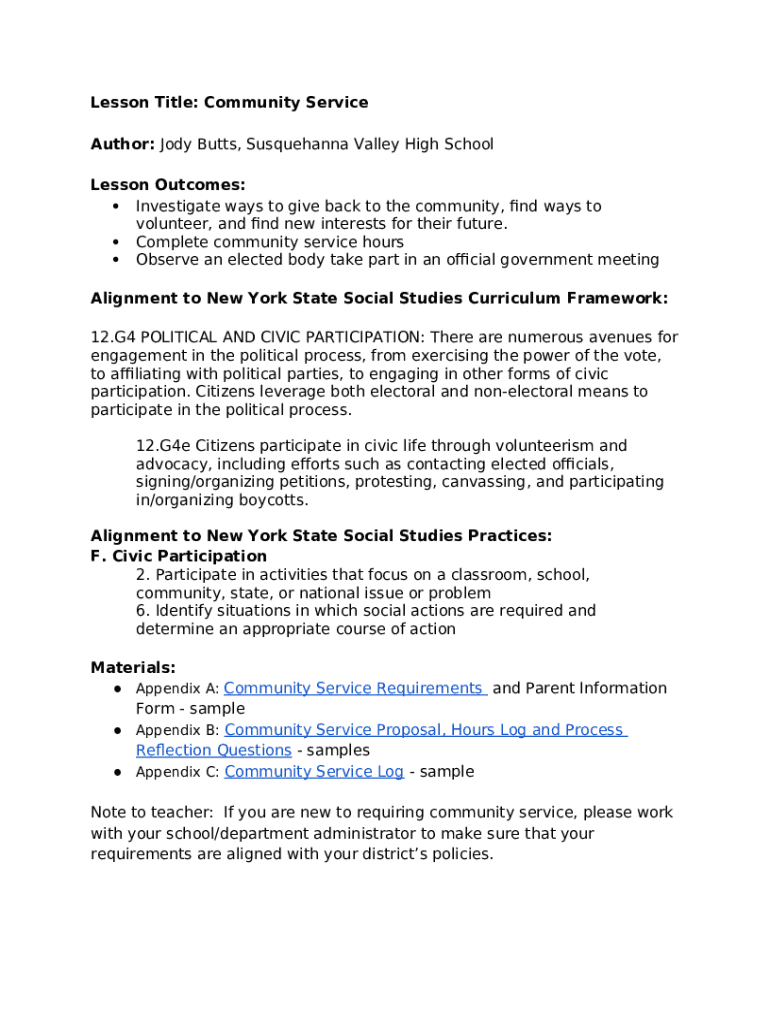 What is Lesson Title: Community Service Author: Jody Butts ... Form?