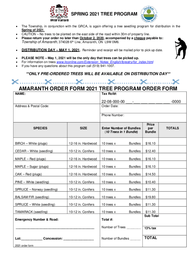 Get the free amaranth order form 2021 tree program order form