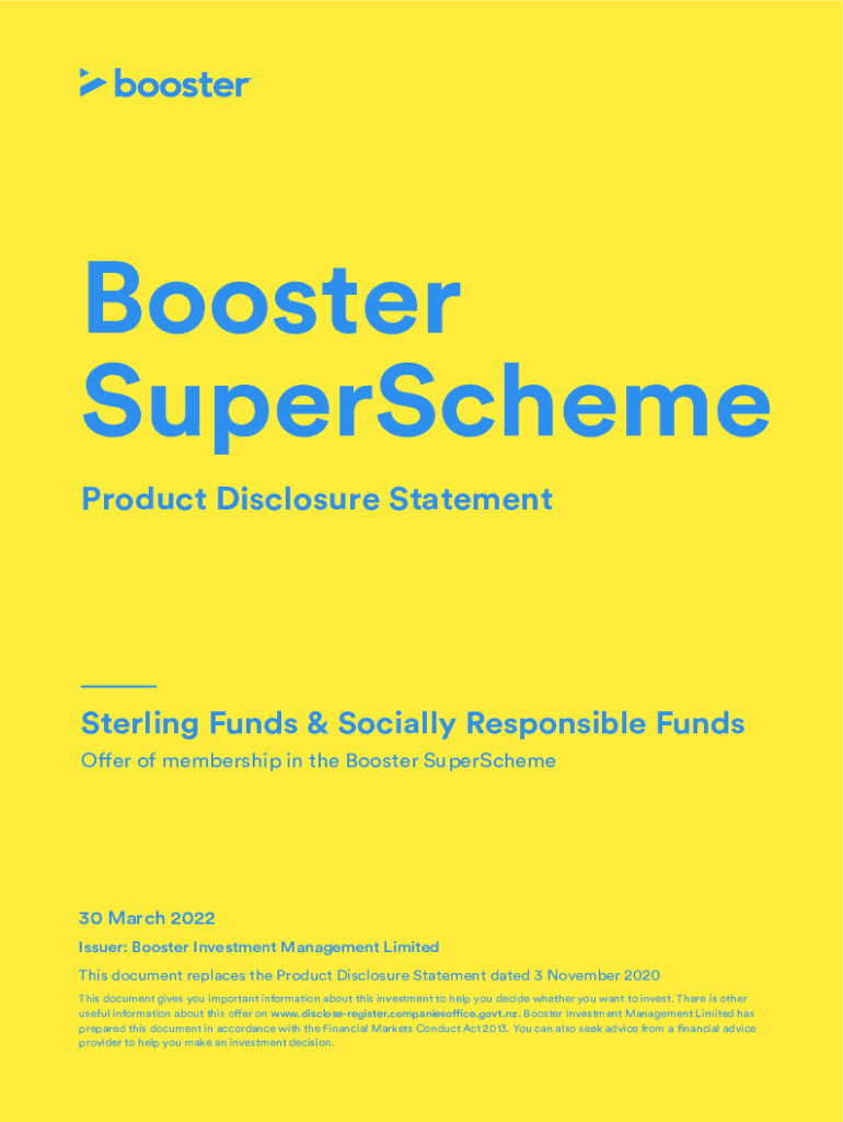Booster Supersede Product Disclosure Statement Sterling Funds & Socially Responsible Funds Offer of membership in the Booster SuperScheme30 March 2022 Issuer: Booster Investment Management Limited