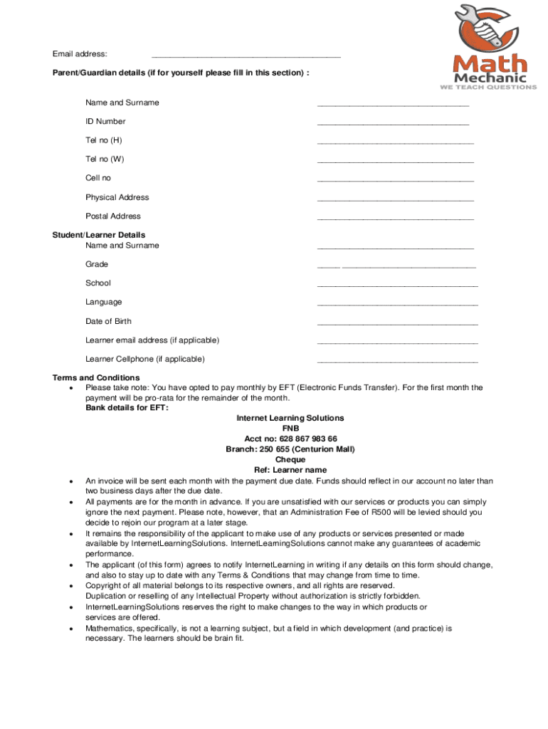 Get the free Email address: Parent/Guardian details (if for yourself ... - matheMAGIX