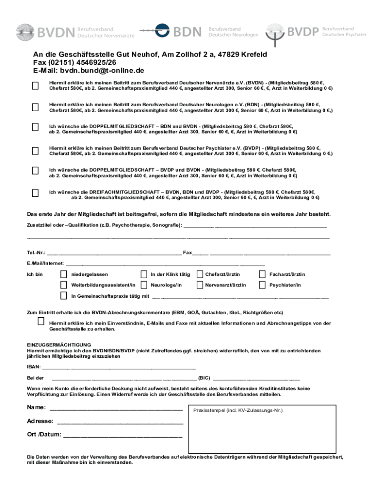 Hermit entire ICH Mann Barrett sum Berufsverband Deutsche Nervenrzte e.V. (BDN) (Mitgliedsbeitrag