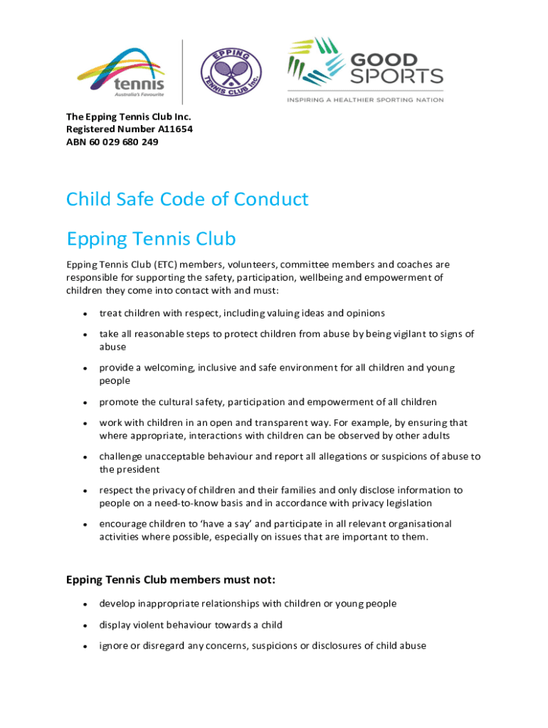 Get the free Child Safe Code of Conduct Epping Tennis Club