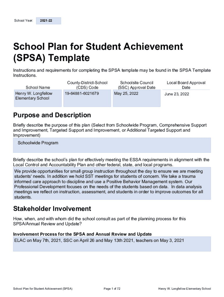School Year:202122SPSA Title Preschool Plan for Student Achievement