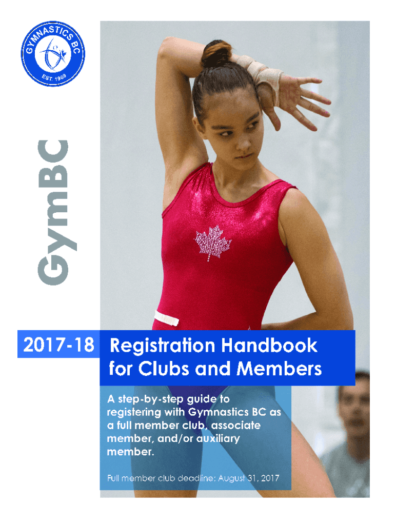 Gym BC 201718 Registration Handbook for Clubs and Members A stepsister guide to registering with Gymnastics BC as a full member club, associate member, and/or auxiliary member. Full member club deadline: