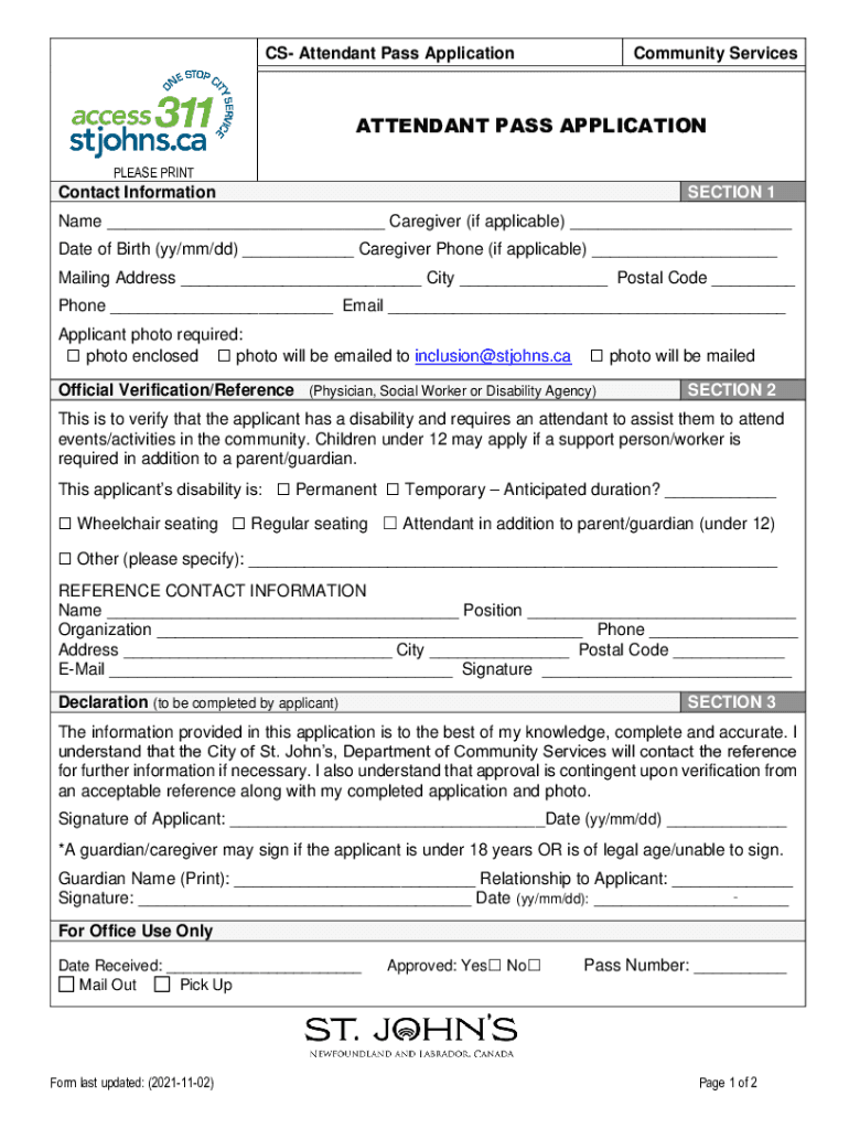 CITY OF ST. JOHN\'S DEPARTMENT OF COMMUNITY SERVICES ATTENDANT PASS INFORMATION Where are passes accepted? City of St. Johns Events & Activities Arts & Culture Center Holy Heart Theater LSP Hall The