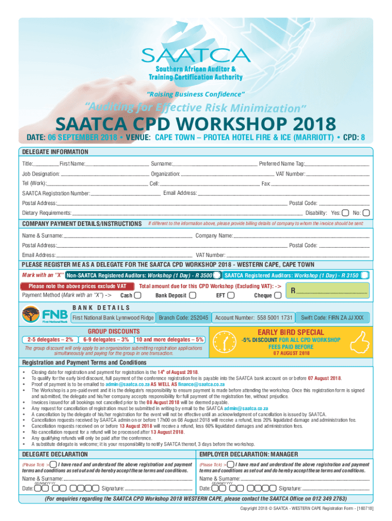Get the free SAATCA Delegate Registration Form - CPD WORKSHOP 2018