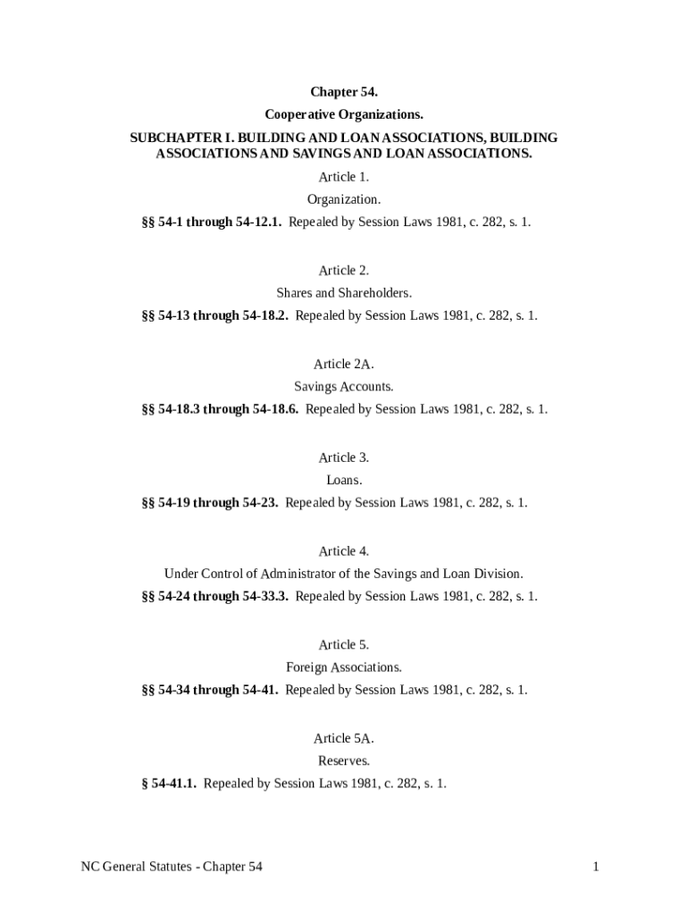 Section 54-19 through 54-23 - Repealed, N.C. Gen. Stat.54-19 ... template instructions
