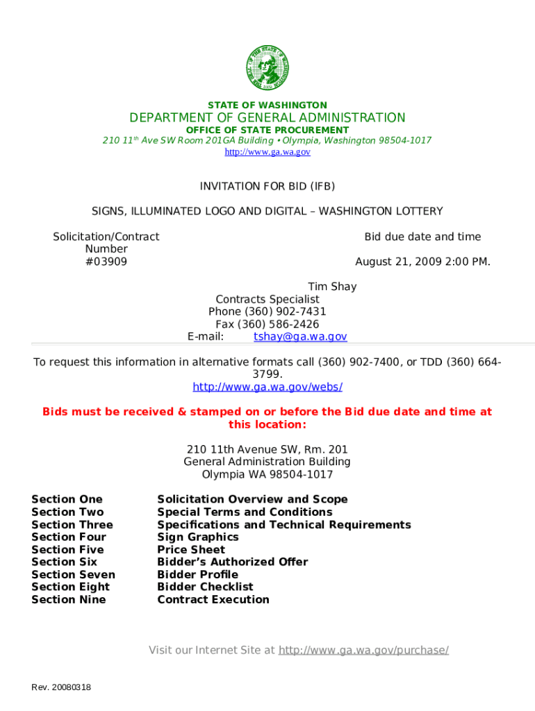 Bid Submittals - Department of Enterprise Services template instructions