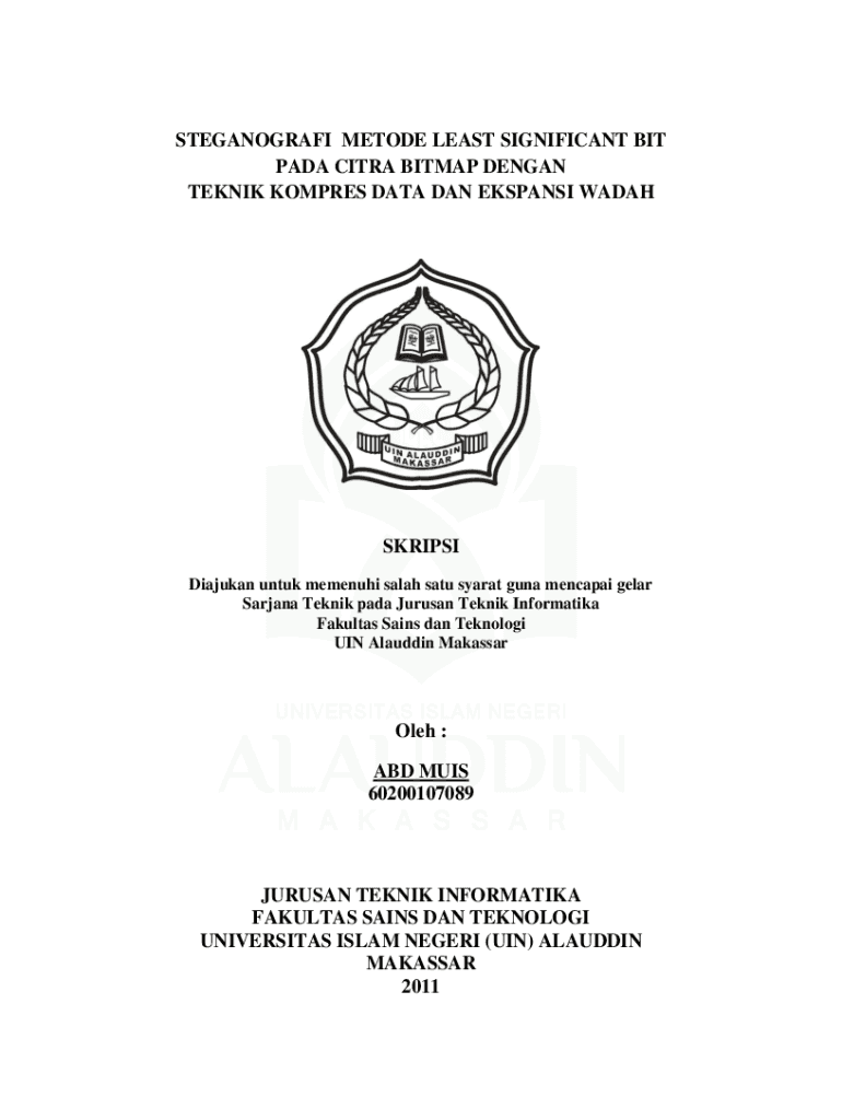 STEGANOGRAPHY METHOD The LEAST SIGNIFICANT BIT PAD CIARA BITMAP BEGAN TENNIS COMPARES DATA DAN SPANS WADAHSKRIPSI Diajukan untuck Yemeni Salah sat start gun Macapá gear Arjuna Tennis pad Juryman