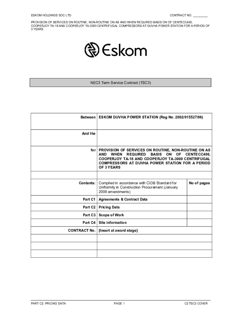 EPSOM HOLDINGS SOC CONTRACT NO. ___PROVISION OF SERVICES ON ROUTINE, ROUTINE ON AS AND WHEN REQUIRED BASIS ON OF CENTECC400, COOPER TA18 AND COOPER TA3000 CENTRIFUGAL COMPRESSORS AT DURHAM POWER STATION