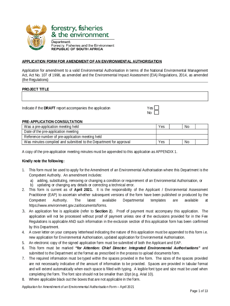 How to fill application for amendment of an environmental ... word template