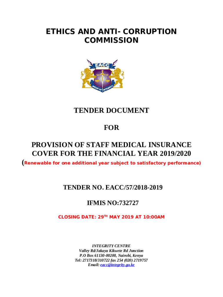 What is provision of staff medical insurance cover invitation to tender ... Form?