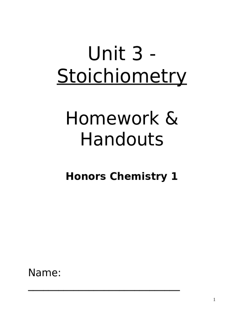 What is Unit 3 - Stoichiometry - Mrs. Forest's Chemistry Class Website Form?