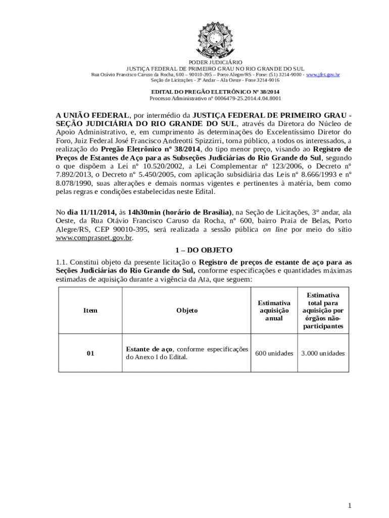 The A UNIO FEDERAL, por intermdio da JUSTIA FEDERAL DE PRIMEIRO GRAU - SEO JUDICIRIA DO RIO GRANDE DO SUL, atravs do Direto is a fillable form in MS Word extension which can be completed and signed for specified purpose. In that case, it is provided to the exact addressee in order to provide some details of any kinds. The completion and signing is available or via an appropriate tool like PDFfiller. Such tools help to complete any PDF or Word file without printing them out. It also allows you to customize it according to the needs you have and put a legal digital signature. Once you're good, you send the A UNIO FEDERAL, por intermdio da JUSTIA FEDERAL DE PRIMEIRO GRAU - SEO JUDICIRIA DO RIO GRANDE DO SUL, atravs do Direto to the respective recipient or several ones by mail and also fax. PDFfiller has got a feature and options that make your Word template printable. It provides a variety of options when printing out appearance. No matter, how you'll distribute a form - in hard copy or by email - it will always look well-designed and organized. To not to create a new writable document from scratch over and over, make the original Word file into a template. After that, you will have an editable sample.