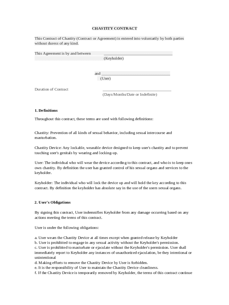 What is Male Chastity Contract & Agreement: Ready To Use Template Form?