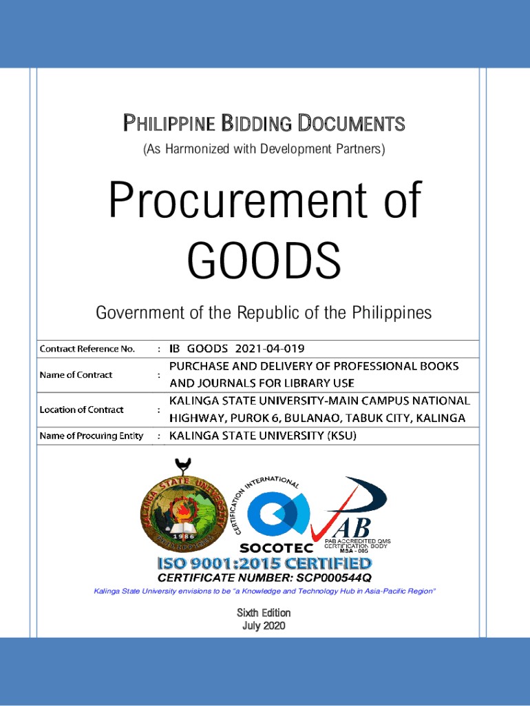 PHILIPPINE BIDDING DOCUMENTS (As Harmonized with Development Partners)Procurement of GOODS Government of the Republic of the PhilippinesKalinga State University envisions to be a Knowledge and Technology