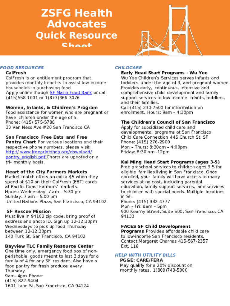 ZSFG Health Advocates Quick Resource Sheet template instructions