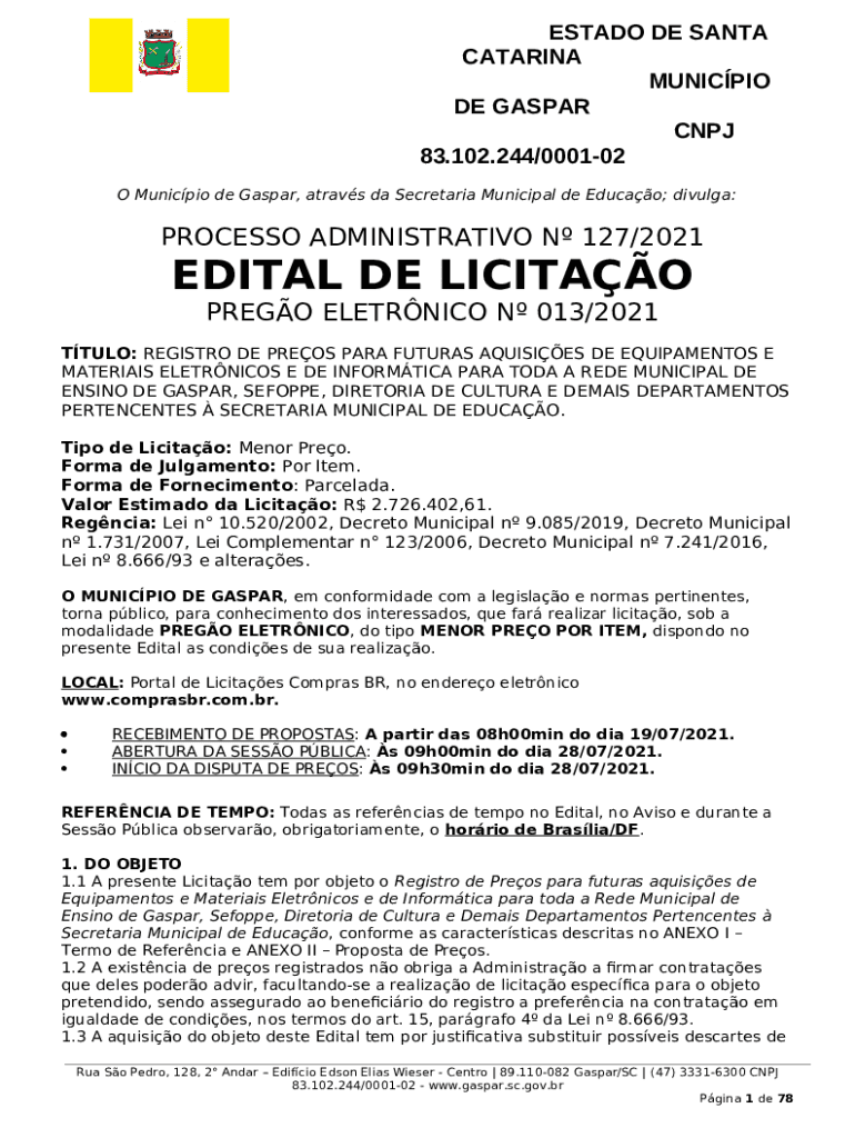 The Licitaes - Prefeitura Municipal de Clevelndia - PR is a Word document which can be completed and signed for certain reasons. Then, it is furnished to the actual addressee to provide some info of certain kinds. The completion and signing may be done or with a suitable service e. g. PDFfiller. These applications help to fill out any PDF or Word file without printing out. While doing that, you can edit its appearance according to your requirements and put a valid electronic signature. Once you're good, you send the Licitaes - Prefeitura Municipal de Clevelndia - PR to the respective recipient or several recipients by mail and even fax. PDFfiller is known for a feature and options that make your blank printable. It offers a number of settings when printing out appearance. It doesn't matter how you will distribute a document - in hard copy or by email - it will always look professional and clear. To not to create a new file from scratch every time, make the original file into a template. Later, you will have an editable sample.