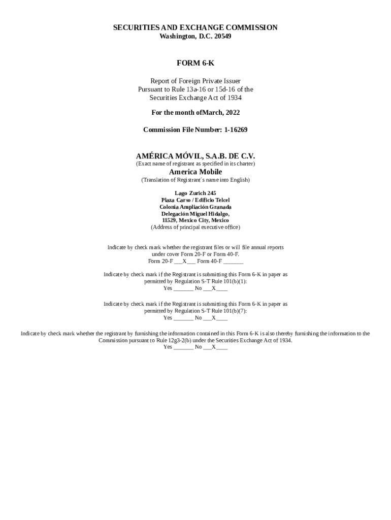 The Get the free 20549 6K REPORT OF FOREIGN PRIVATE ... is a document that has to be filled-out and signed for certain purposes. Next, it is provided to the relevant addressee to provide certain info of certain kinds. The completion and signing is available manually or with an appropriate tool like PDFfiller. These tools help to submit any PDF or Word file without printing them out. While doing that, you can edit it according to your needs and put legit digital signature. Once you're good, the user ought to send the Get the free 20549 6K REPORT OF FOREIGN PRIVATE ... to the recipient or several ones by mail and even fax. PDFfiller has a feature and options that make your template printable. It has a variety of settings for printing out appearance. It does no matter how you'll file a form - physically or by email - it will always look well-designed and clear. In order not to create a new editable template from scratch every time, turn the original document into a template. After that, you will have a customizable sample.
