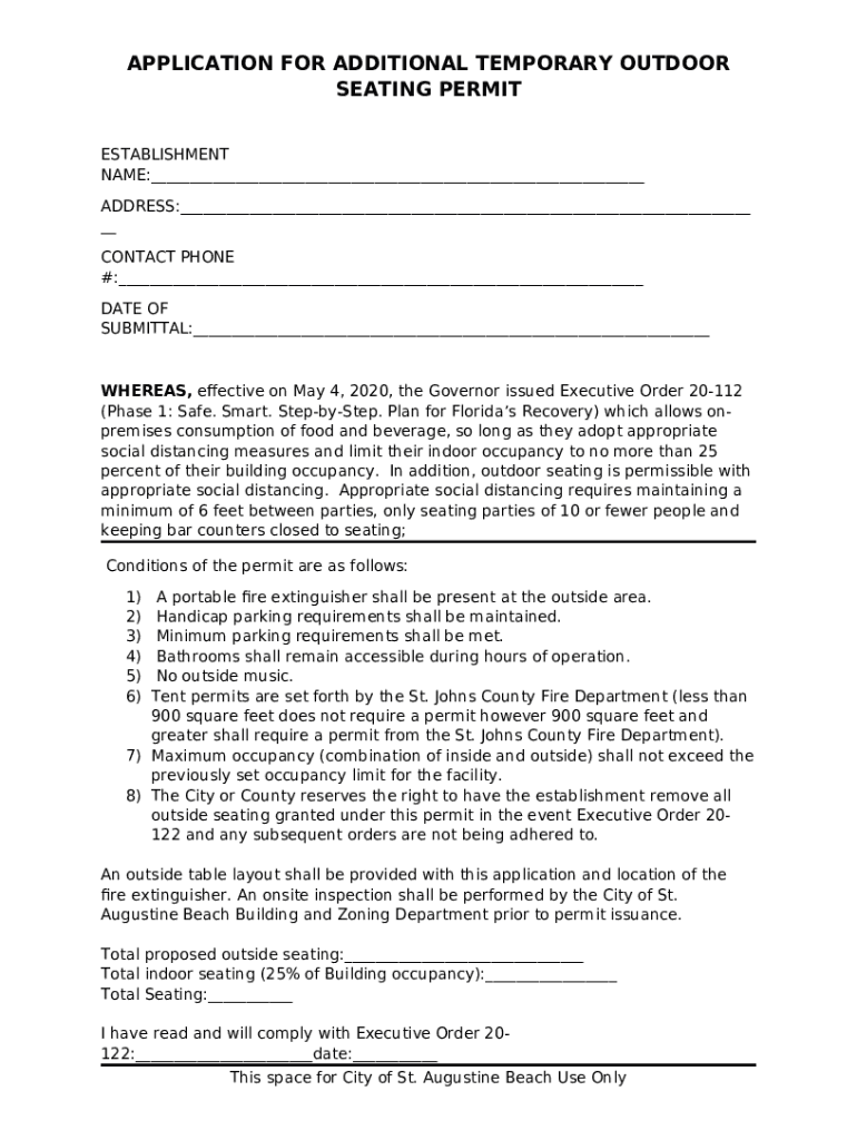Temporary Outdoor Seating Application for Restaurants and ... template instructions