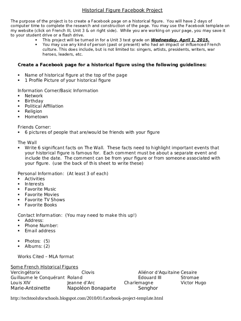 Instructions for the form Historical Facebook Profile Template Teaching Resources - TPT