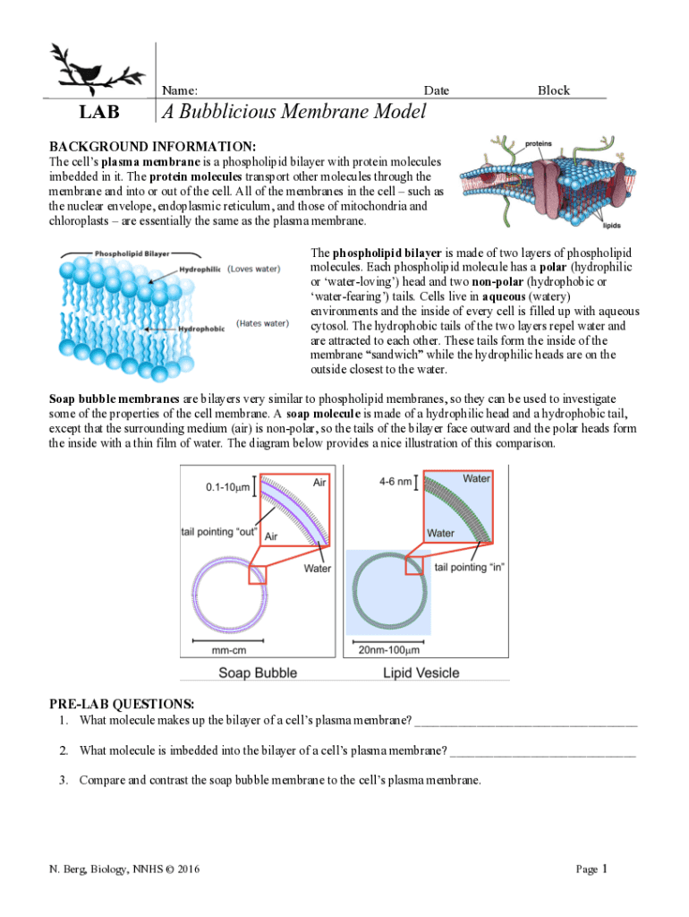 Name:LABDateBlockA Lubricious Membrane ModelBACKGROUND INFORMATION: The cells' plasma membrane is a phospholipid bilayer with protein molecules embedded in it. The protein molecules transport other
