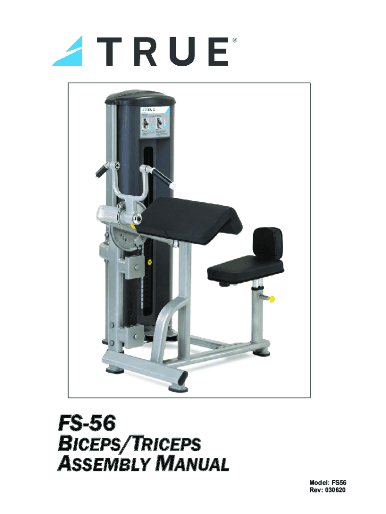 FS56 BICEPS/TRICEPS ASSEMBLY MANUAL Model: FS56 Rev: 030620A MESSAGE TO OUR CUSTOMERS Frank Pulaski began TRUE Fitness over thirty-five year ago with the simple philosophy of delivering superior fitness