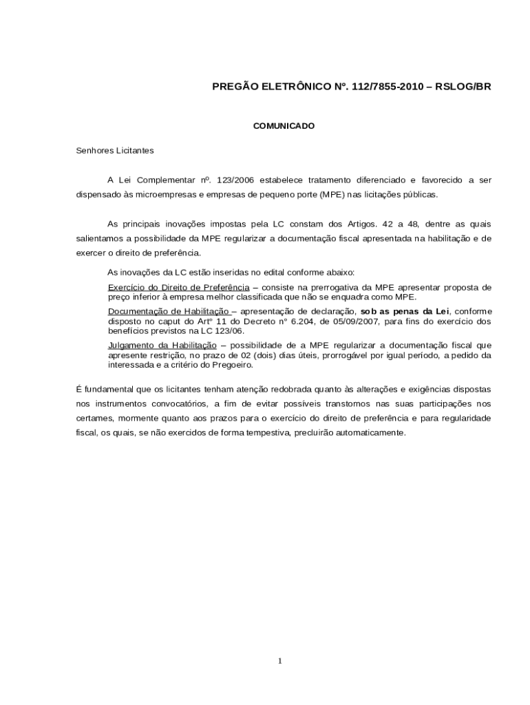 Benefcios concedidos s MPEs perante s licitaes (Lei n ... template instructions