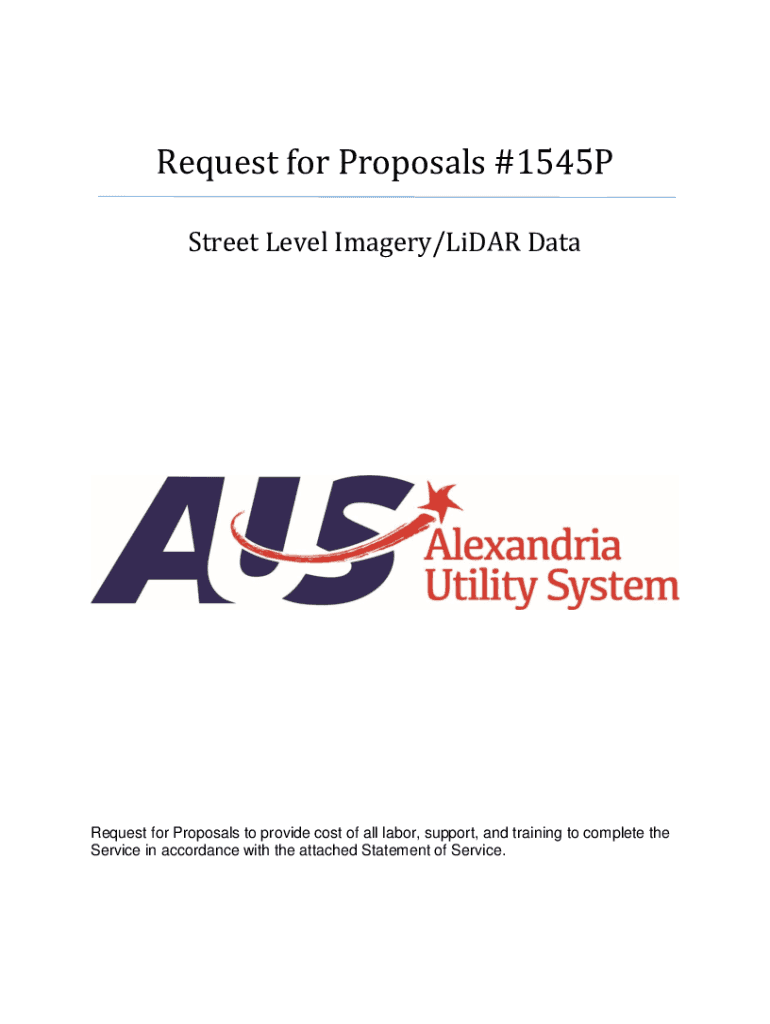 Request for Proposals #1545P Street Level Imagery/LiDAR DataRequest for Proposals to provide cost of all labor, support, and training to complete the Service in accordance with the attached Statement