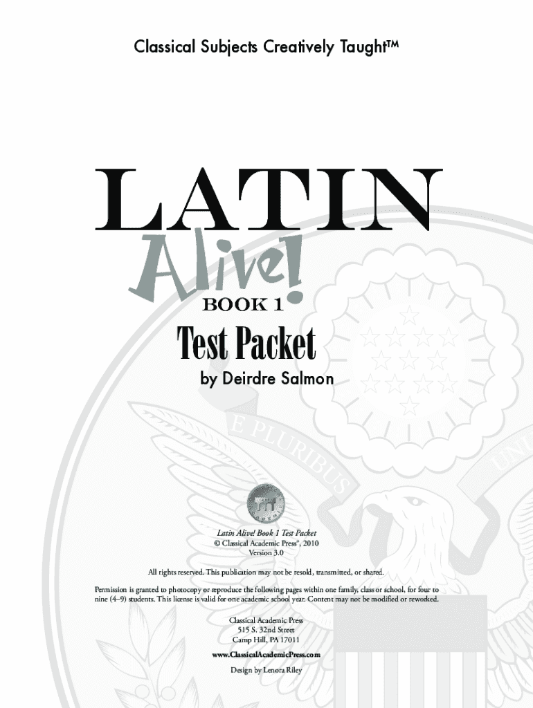 Get the free Latin Alive! Book 1 Test Packet - Calgary Classical Schole