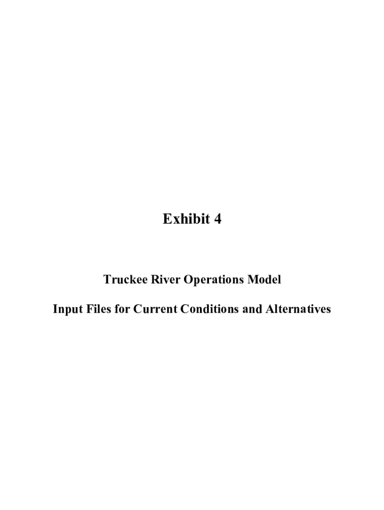 Exhibit 4Truckee River Operations Model Input Files for Current Conditions and AlternativesINPUT FILE DESCRIPTIONS Negotiations Model Input Files TCDATFIL contains 22 data inputs from 19012000 into