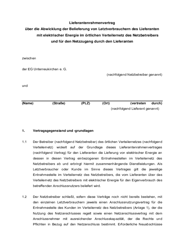 Energy suppliers and grid operators are required to file netznutzungsvertrag ber die nutzung.