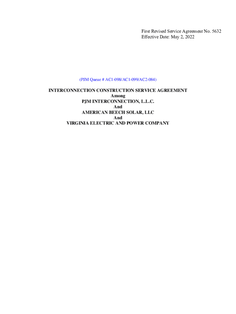 First Revised Service Agreement No. 5632 Effective Date: May 2, 2023(PM Queue # AC1098/AC1099/AC2084)INTERCONNECTION CONSTRUCTION SERVICE AGREEMENT Among PM INTERCONNECTION, L.L.C. And AMERICAN BEECH