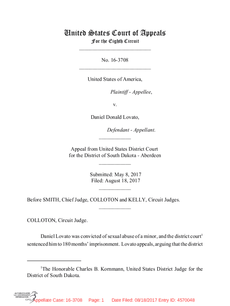 Get the free 16-3708 - United States v. Daniel Lovato - Content Details -