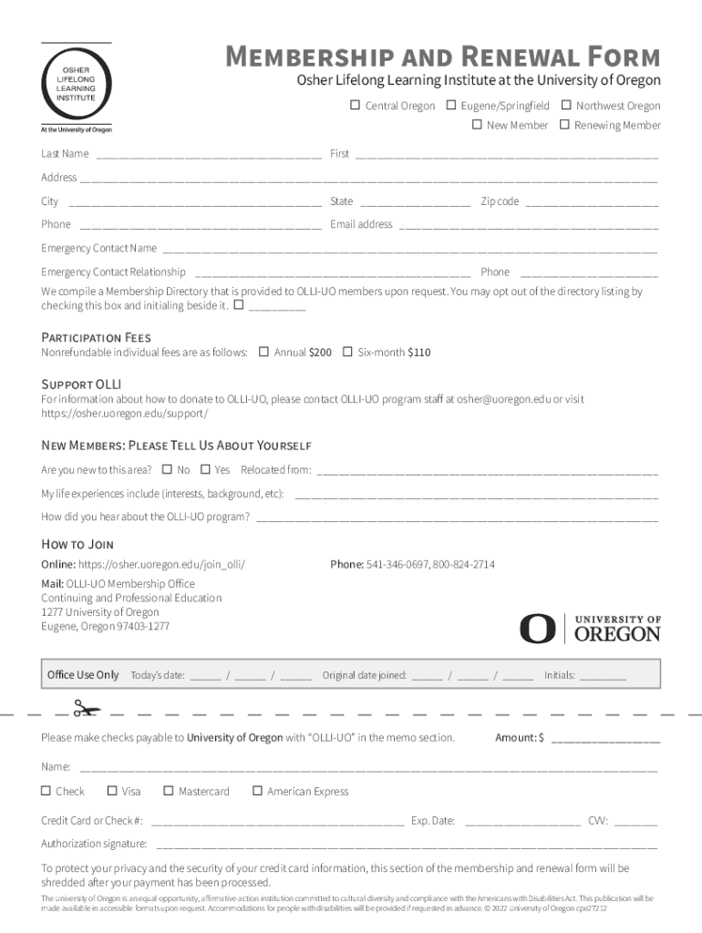 Get the free How to renew your OLLI-UO membership online in the ... - osher uoregon