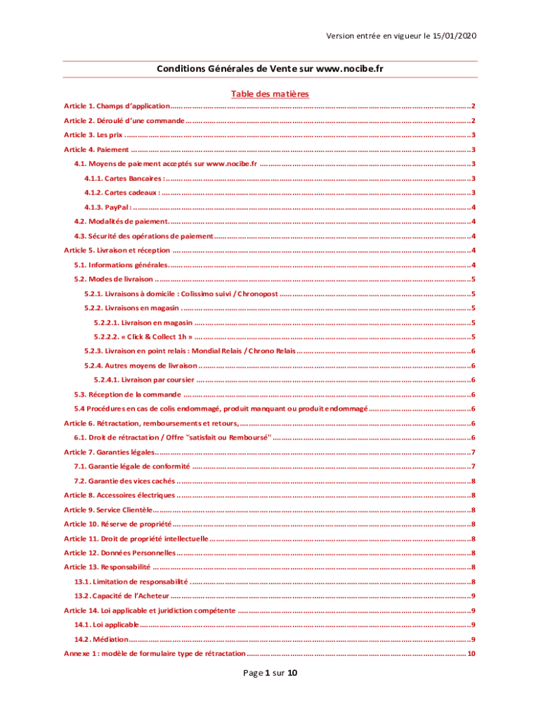 Version entire en liqueur LE 15/01/2020Conditions Grades de Vente SUR www.nocibe.fr Table DES matures Article 1. Champs application..........................................................................................................................................