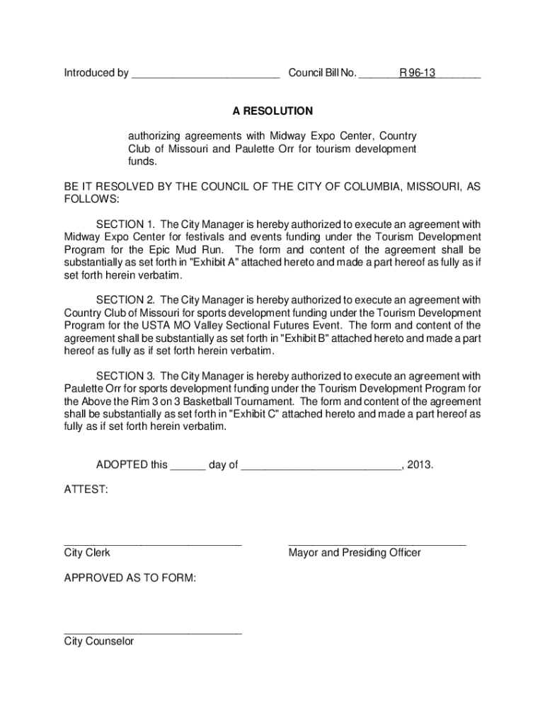Get the free Introduced by Council Bill No. R 96-13 A ...