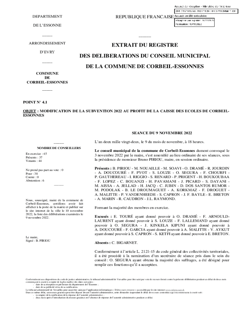 DEPARTEMENTREPUBLIQUE FRANCHISED LESSON NE ______ARRONDISSEMENTEXTRAIT DU REGISTREDEVRYDES DELIBERATIONS DU CONSENT MUNICIPAL___DE LA COMMUNE DE CORBEILESSONNES COMMUNE DE CORBEILESSONNES ___POINT