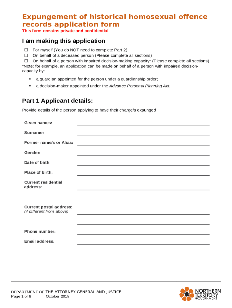 Expungement of historical homosexual offence records application - nt gov template instructions