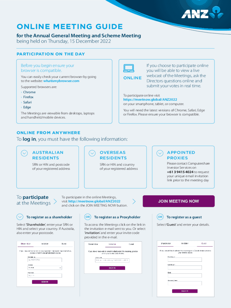 ONLINE MEETING GUIDE for the Annual General Meeting and Scheme Meeting being held on Thursday, 15 December 2022 PARTICIPATION ON THE Before you begin ensure your browser is compatible. You can easily