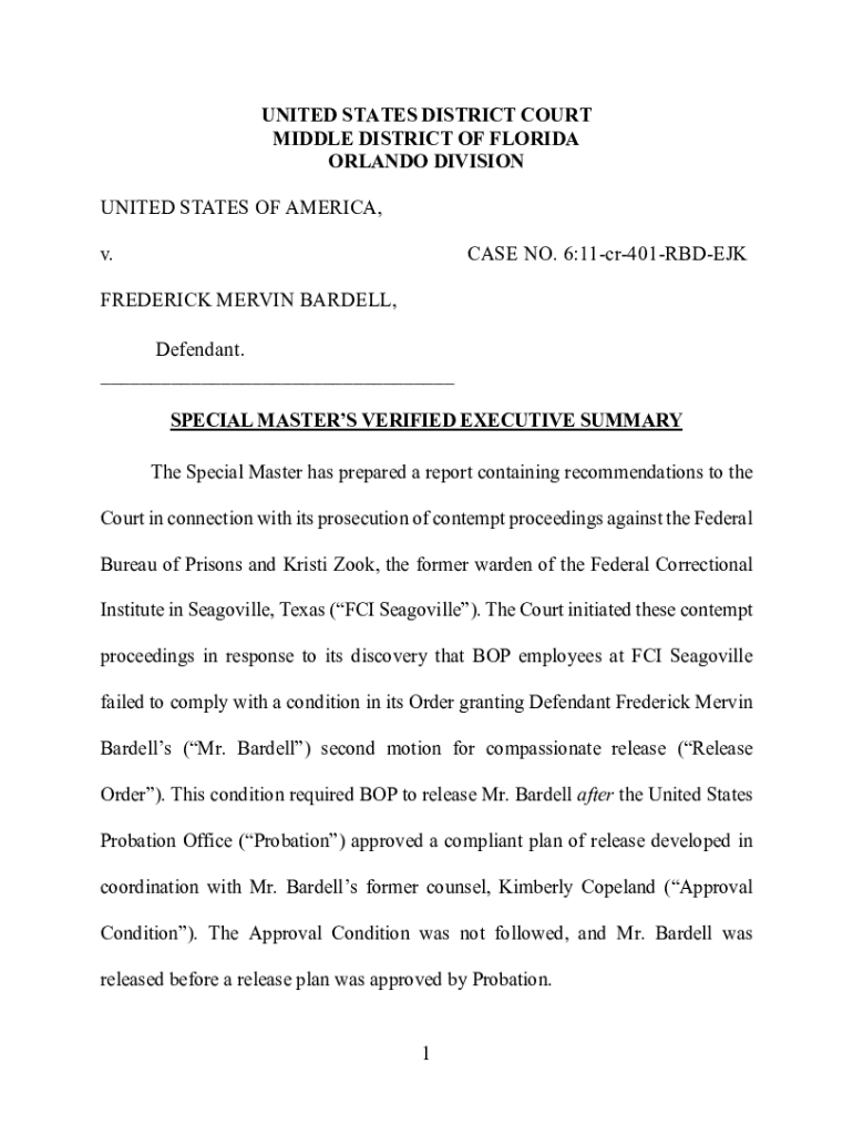 UNITED STATES DISTRICT COURT MIDDLE DISTRICT OF FLORIDA ORLANDO DIVISION UNITED STATES OF AMERICA, v.CASE NO. 6:11cr401RBDEJKFREDERICK MERVIN BARBELL, Defendant. ___ SPECIAL MASTERS VERIFIED EXECUTIVE