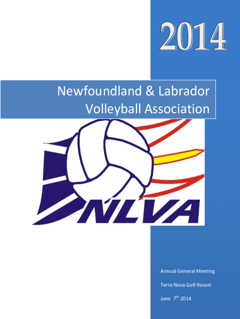 Newfoundland & Labrador Volleyball AssociationAnnual General Meeting Terra Nova Golf Resort June 7th 2014Newfoundland & Labrador Volleyball Association 2014 AGENDA JUNE 7th, 2014Saturday June 8th,