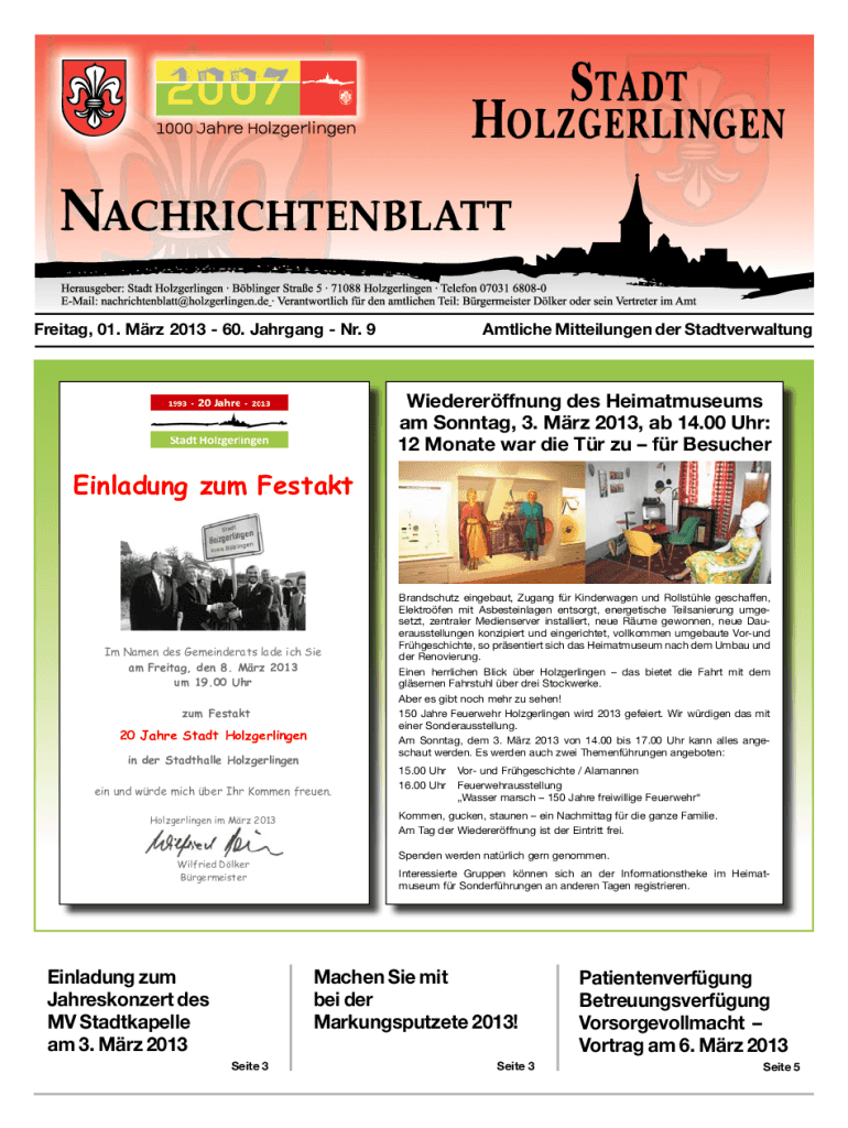 Freytag, 01. Mr 2013 60. Charging NR. 9Amtliche Mitteilungen her StadtverwaltungWiedererffnung DES Heimatmuseums am Sontag, 3. Mr 2013, ab 14.00 UHF: 12 Monte war die Try EU for Beecher Brandschutz